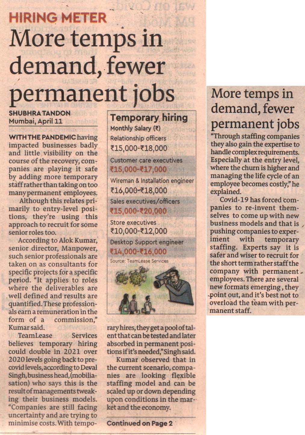 Read MorePendamic effect : 'Temps' are gaining an edge over permanent, contract staff