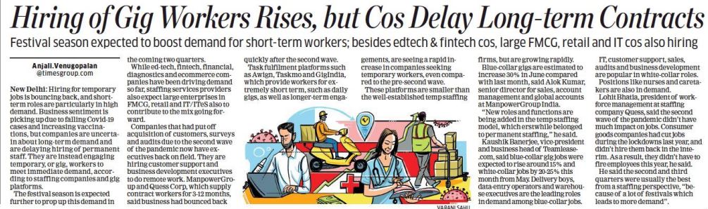 Huge demand for temporary staff from core sector such as IT & ITeS; freelancing model saw 10% growth in 2020.