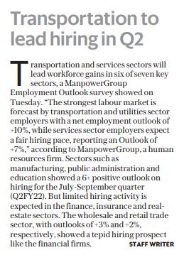 Read MoreEmployment outlook at 7-year high in third quarter of FY21: Report
