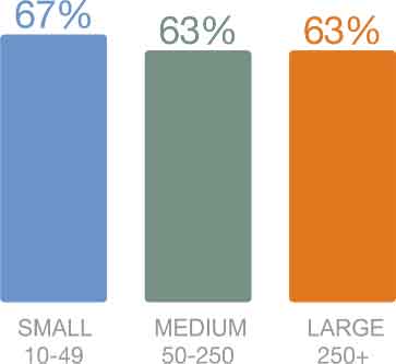 Small companies (10-49 employees) have the most difficulty filling roles; followed by large (250+ employees), and medium (50-249 employees) company.