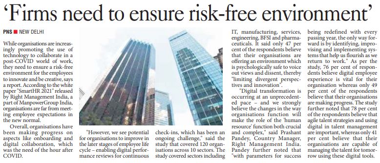 The article talks about the case of Great Resignation aka Big Quit as Indian software vendors are struggling to retain digital talent – the most sought-after in the IT industry today – so much so that nearly 50 per cent of them move out, mostly to another company for a higher pay. This, in turn, has created a huge demand and supply problem for digital talent. A few years ago, this was the trend with software engineers. Commenting about the demand Mr Sanju says “The digitisation of business environment is creating an unprecedented demand for talent in digital skills. “While the high demand is leading to high attrition, we believe this will rationalise, and this situation should ease up in 2 to 3 quarters,”